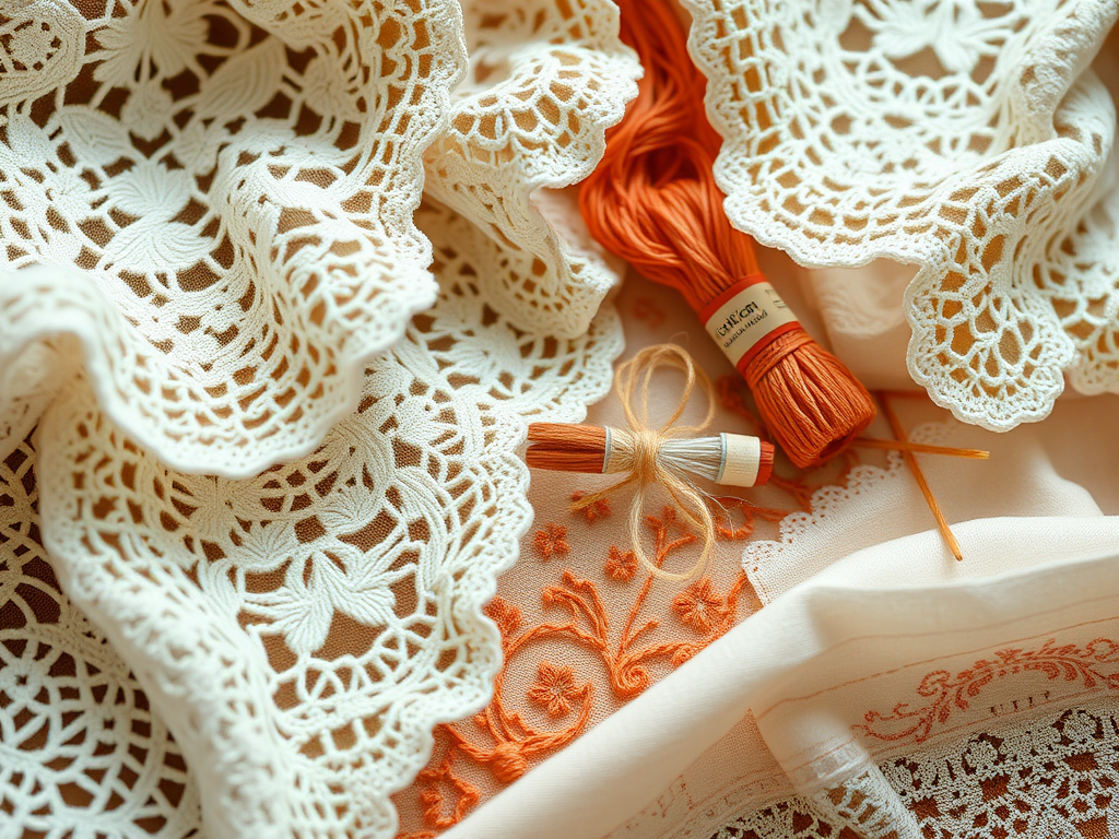 Lace, embroidery, thread